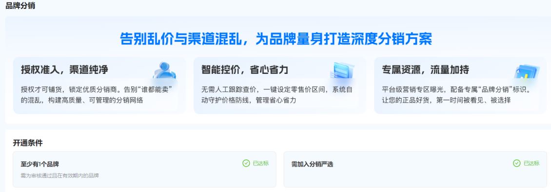 答:这可太巧了,阿里最近刚出了一个新功能,叫做品牌分销,就是专门治你这个问题的。它有3大好处: